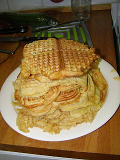 Se meijän vohvelirauta on ihan tyhmä, semmonen millä voi paistaa kahta vohvelia samaan aikaan, vähän niinkun leivänpaahtimeen saa kaksi leipää ja noi vohvelit on vain neljä sakaraisia.