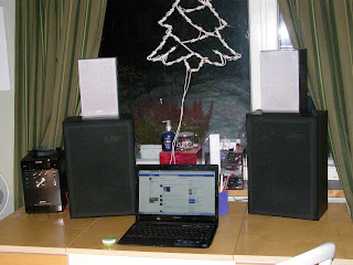 Isi osti mulle viikonloppuna uudet stereot. Onko ne stereot? Tai siis musta kuulostaa jotenkin tyhmältä sana stereo, mutta anyway siinä sellanen keskiosanen ja kaksi erillistä kaijutinta. Aika sellassia pieniä, niin äiti sitten haki kirpparilta kaksi sellasta ihan tarpeeksi isoa mustaa kaijutinta siihen.