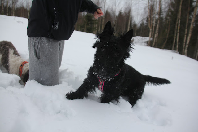 Tähän alkuun heti pahoittelen kuvien laaduttomuutta niin sisällöllisesti, kuin valokuvauksellisesti. Postailen mutsin koneella niin en pääse edes rajauksia ja valotusta muuttamaan. Kuitenkin, oltiin tänään lenkkeilemässä läheisen pellon takana kaverin ja sen koiran, Rokin kanssa. Roki on vissiin 7- tai 8-vuotias Espanjanvesikoira eli siis tuo isompi ja vaaleampi noissa kuvissa. Rudolfista ei löytynyt kuvia, joissa se ei näytä psykopaatilta tai muuten vaan idiootilta.